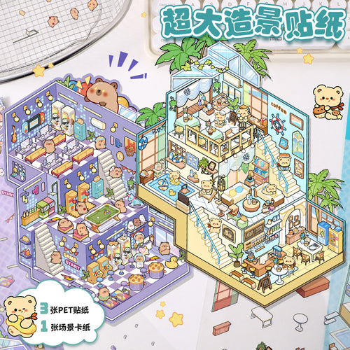 Large Special Oil Scene Stickers 108.0 Stickers 3D Miniature House Miniature Scene Journal Stickers
