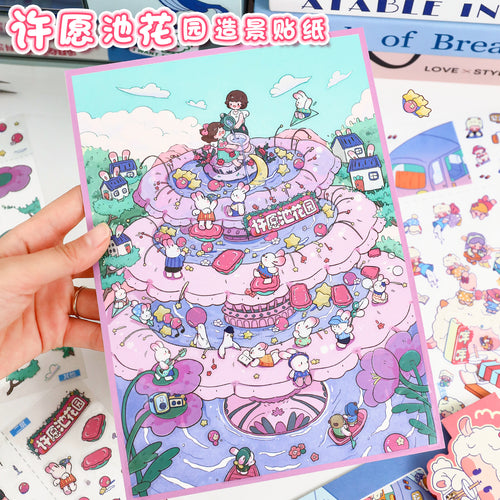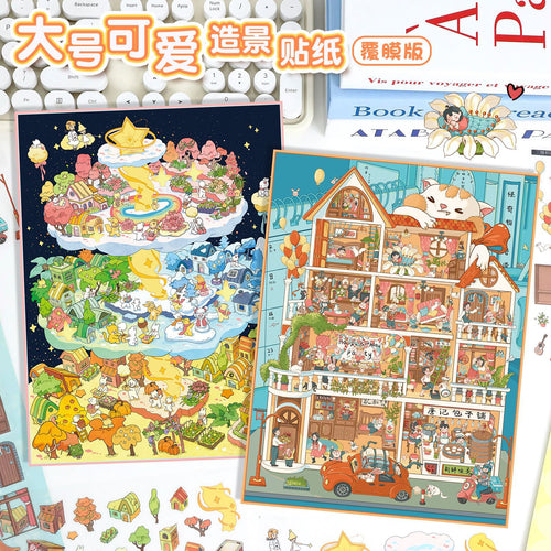 Scenery Stickers Cartoon Miniature Scenes 21.0 Collage Cute Stacked 3D Journal Decoration Stickers -