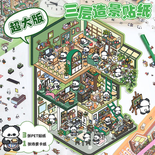 Panda 3D House Miniature Cute Scenery Collage Paper Stickers -