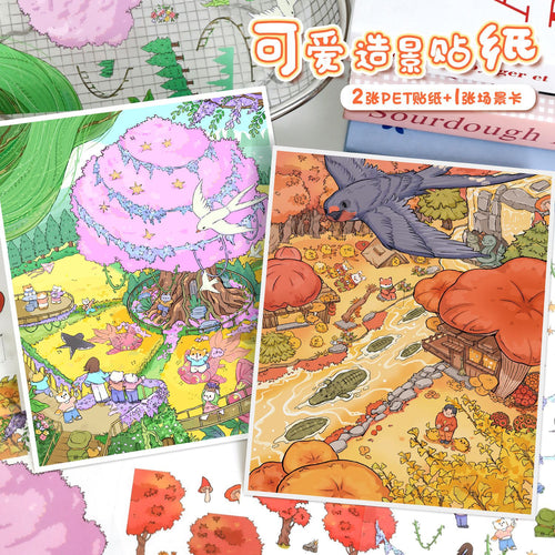 Sparkling Fun Large Size Scenery Stickers Cartoon Cute DIY Miniature 3D Scene Stickers -
