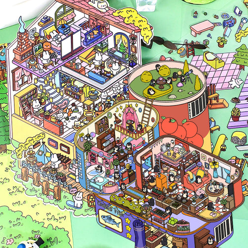 Zoo Small Class Fantasy Wandering Large Size Miniature Landscape Stickers 3D Miniature House Journal Quiet Book -